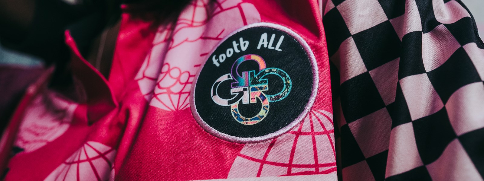 Estilizado en un vibrante fucsia, la jersey de Juliette se mantiene fiel a su estilo icónico con múltiples gráficas en la parte delantera. La camiseta está acabada con patrones propios de un tablero de ajedrez en las mangas y un elegante cuello negro.